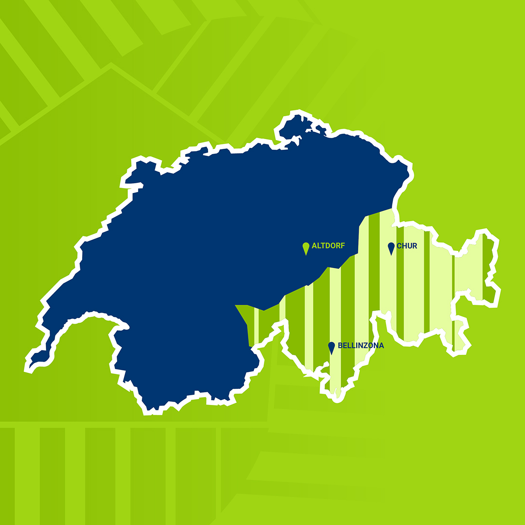 Wir sind für Sie in den Kantonen Graubünden, Tessin und Teilen von Uri im Einsatz. Überall dort, wo Qualität und Verlässlichkeit gefragt sind – ob in den Bergen oder Tälern – sorgen wir dafür, dass Sie moderne Gebäudetechniklösungen erhalten.